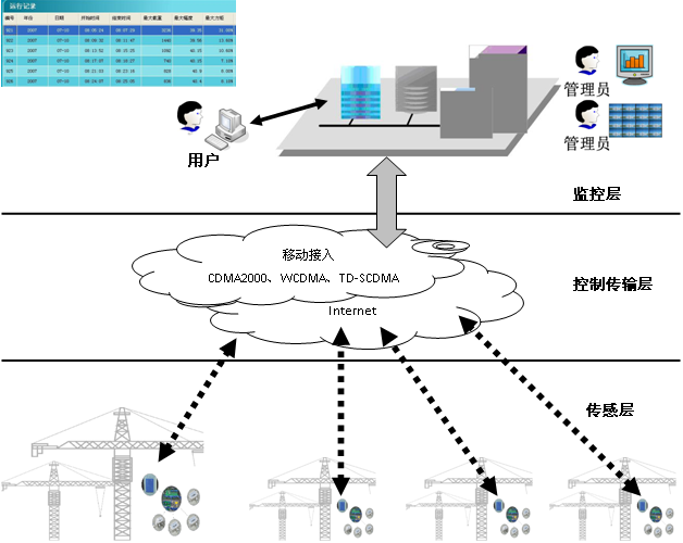 5) 通過該系統(tǒng)實(shí)現對塔式起重機(ji)和等設備的狀态(tài)監測和監督(dū)管(guan)理等功能。