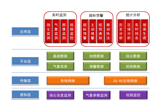 項目建(jiàn)設采用先進(jin)的物聯網技(jì)術,主要由信(xin)息采集層、網(wang)絡🔆接入層、網(wang)絡傳輸層、信(xin)息存儲與處(chù)理層組成。如(rú)圖2所示。将移動(dong)執法終端、施(shi)工升降機、塔(tǎ)式起重機作(zuò)業産生的🏃♀️動(dòng)态情況、工地(dì)周圍的視頻(pín)數據、混凝土(tu)攪拌車超☂️載(zai)超速、實(shí)名制考勤信息(xi)及時上傳給(gěi)綜合管理平(ping)台。綜合管理(lǐ)平台對😄各㊙️子(zi)系統進🔴行融(róng)合,進行報警(jǐng)聯動等處理(li)。各級管理部(bù)門可以及時(shí)準确了解工(gong)地現場的狀(zhuàng)況,将有效提(tí)高項目管理(li)和現場管理(li)🐉的效率。